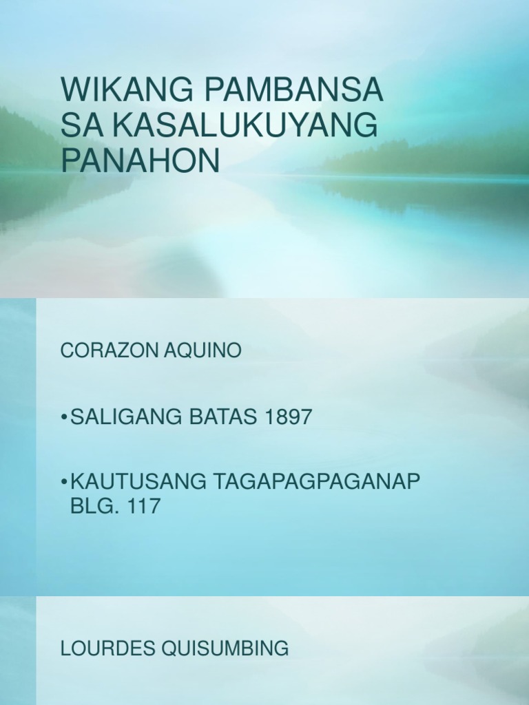 Kasaysayan ng wika mula 1987 hanggang sa kasalukuyan. Hulyo 4 1946 Nakamit ng Pilipinas ang kanyang kasarinlan. 16082016 Tunay namang makiling sa mga konserbatibong gawain ang mga alagad ng wikang pambansa hanggang dekada 60.